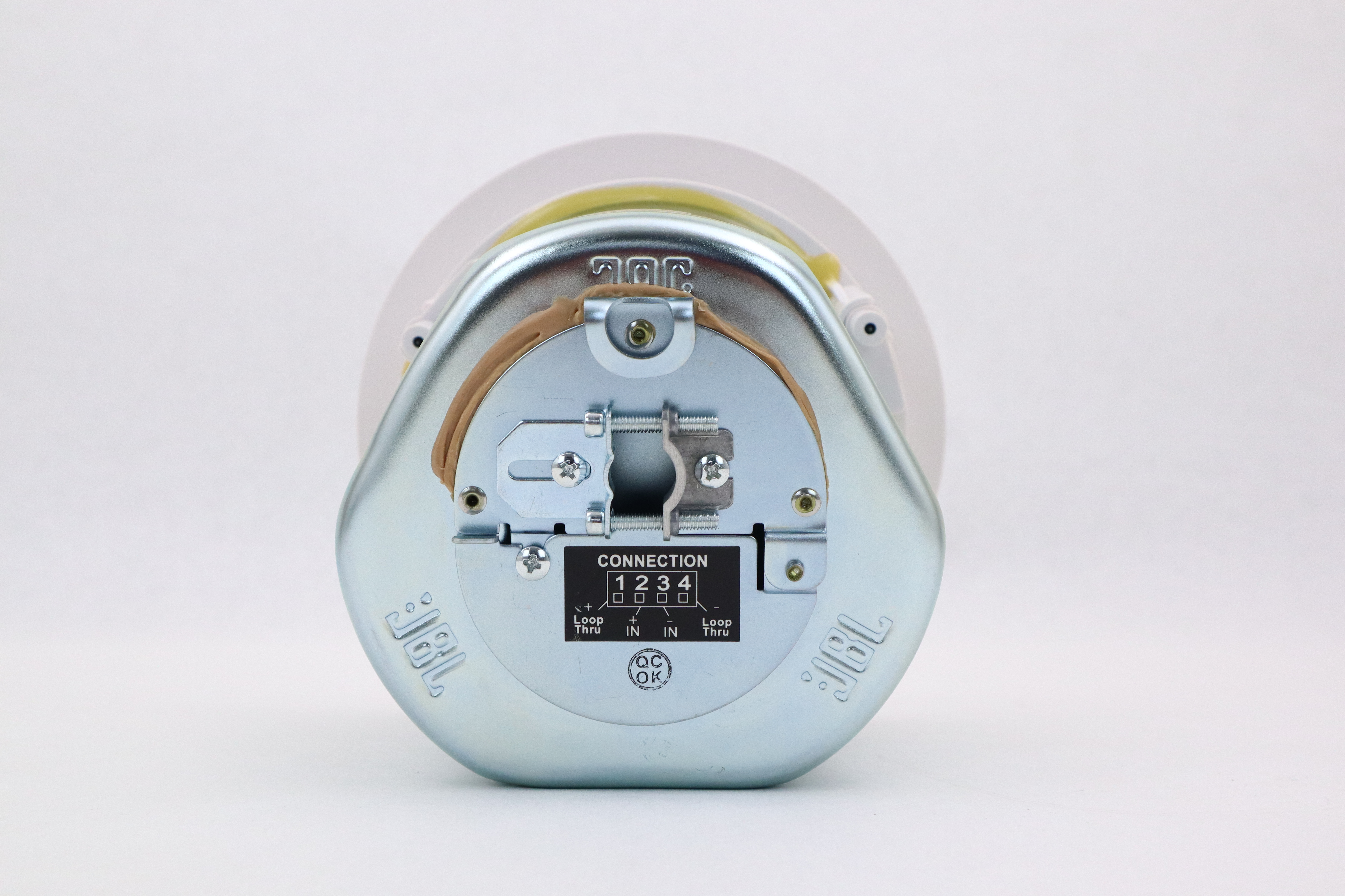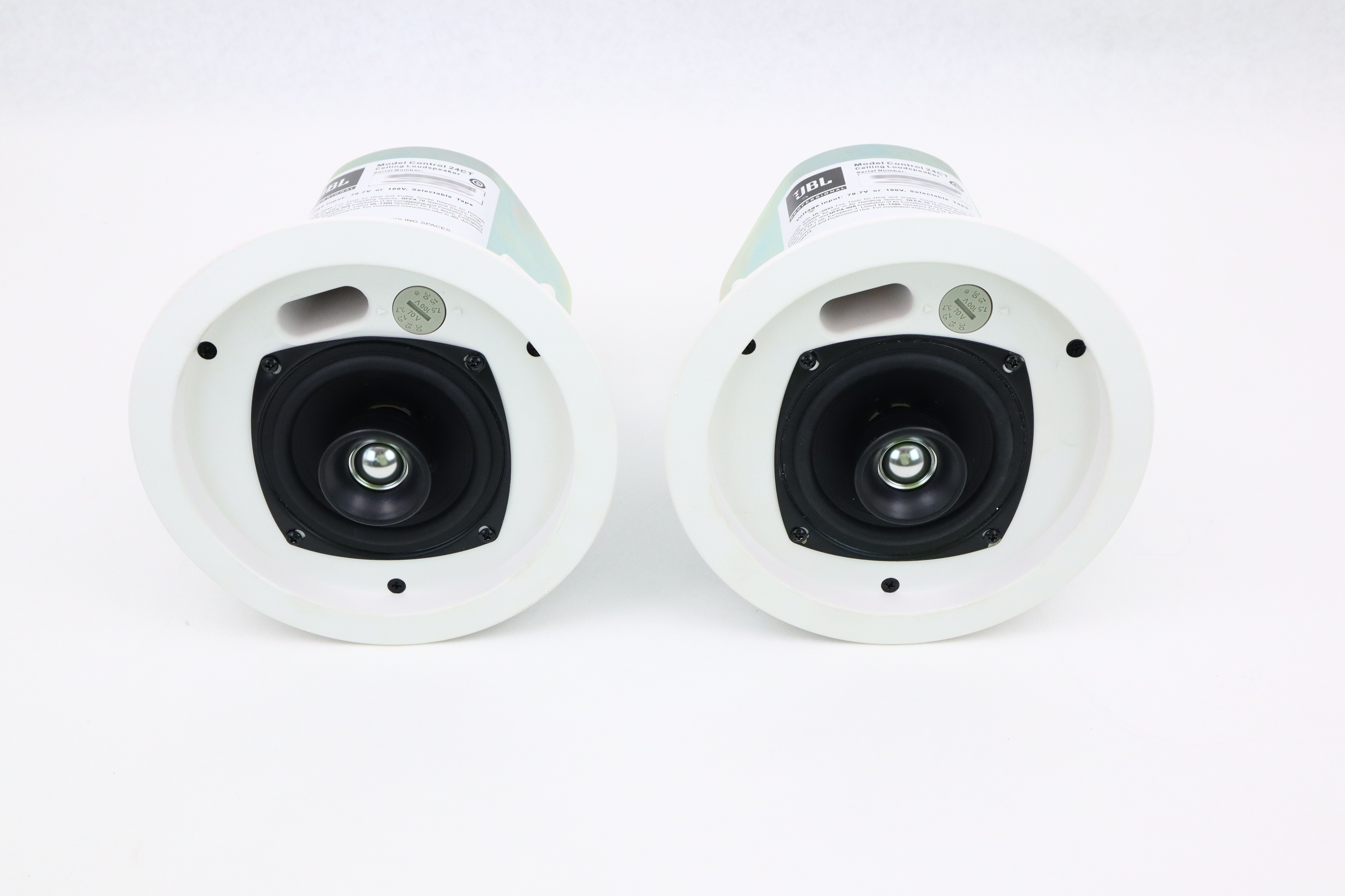 Frequency Range 80 Hz - 20 kHz Power Rating See transformer taps Transformer Taps 70V: 30W, 15W, 7.5W (& 3.7W @ 70V) Coverage Angle 130° conical Directivity Factor (Q) 2.4 dB averaged 500 Hz to 4 kHz Directivity Index (DI) 3.8 dB averaged 500 Hz to 4 kHz Maximum SPL (1m) 102 dB (top 70V/100V tap) Nominal Impedance 16 ohms (Min Z 16.1 ohms @ 320 Hz) Sensitivity 86 dB (100 Hz - 10 kHz) Input Connectors Removable 4-pin locking connector with screw-down terminals. Color White